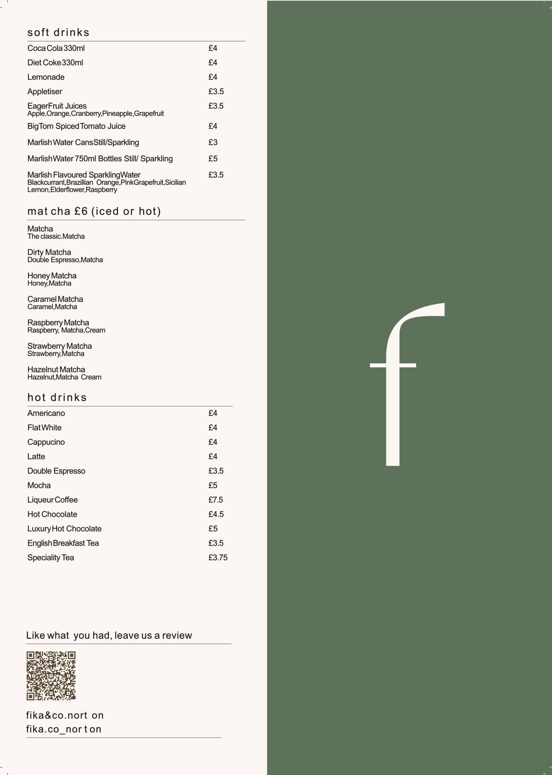 Drinks Menu Make a Booking Fika Vouchers Links Home Menus Booking Vouchers Privacy Contact Us Call: 01642609341 Email: info@fikaco.com 7 High Street Norton, TS20 1AH FollowFollowFollowFollow Opening Hours Monday 8am – 4pm Tuesday Closed Wednesday 8am – 4pm Thursday 8am – 10pm Friday 8am – 10pm Saturday 9am – 10pm Sunday 9am – 2pm