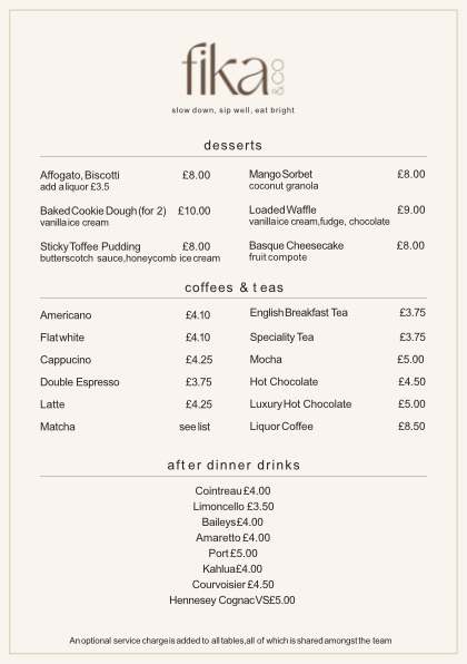 Our Menus All Day Brunch Menu Weekend Evening Menu Thursday Evening Menu Drinks Menu Dessert Menu Links Home Menus Booking Vouchers Privacy Contact Us Call: 01642609341 Email: info@fikaco.com 7 High Street Norton, TS20 1AH FollowFollowFollowFollow Opening Hours Monday 8am – 4pm Tuesday Closed Wednesday 8am – 4pm Thursday 8am – 10pm Friday 8am – 10pm Saturday 9am – 10pm Sunday 9am – 2pm